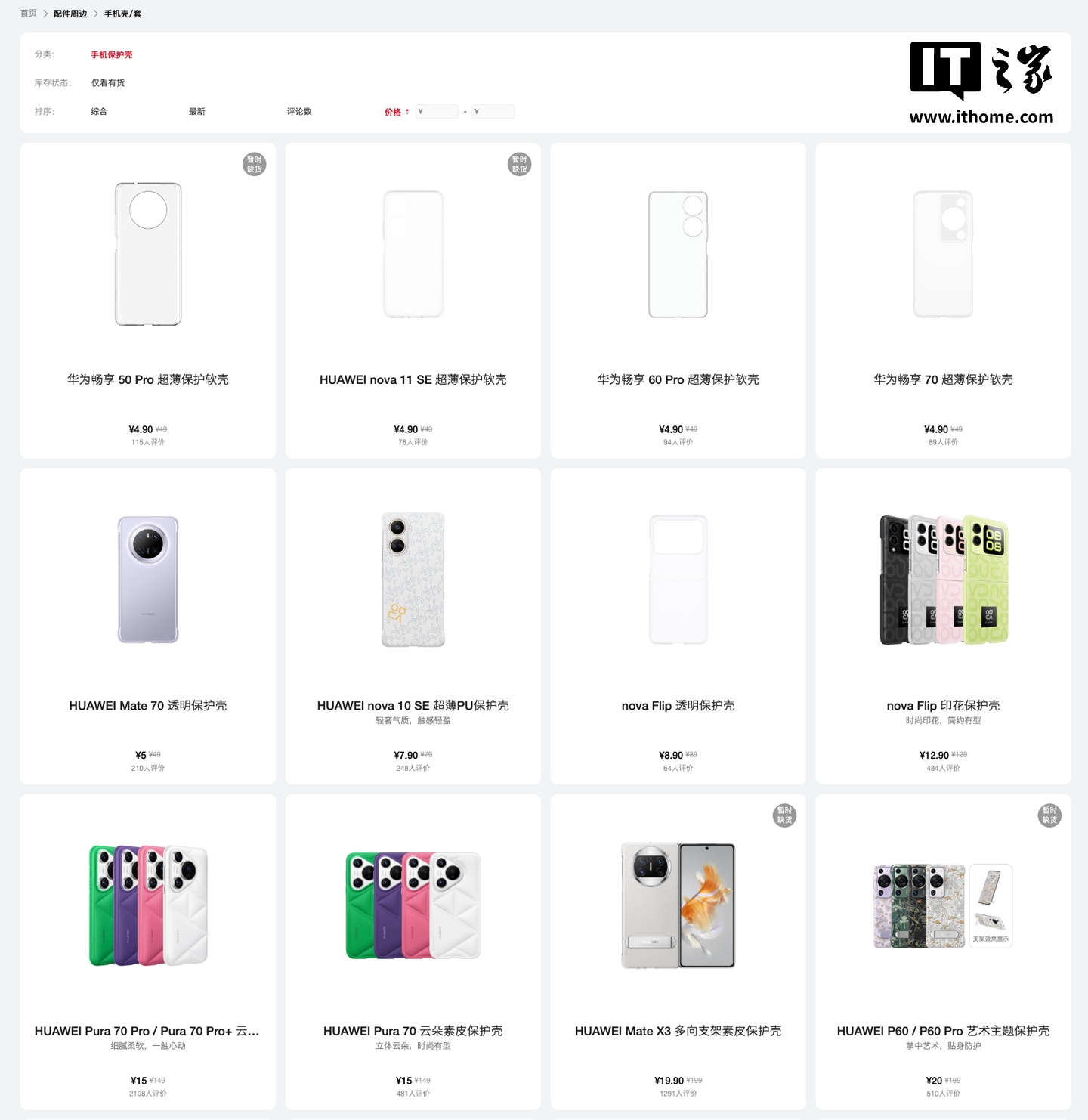 IT之家 12 月 29 日消息,华为商城目前多款旧款机型的手机壳迎来 1 折促销,部分产品价格低至 4.9 元,IT之家整理价格如下: